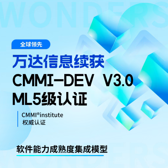持续保持软件能力全球领先!万达信息续获CMMI-DEV V3.0 ML5级认证
